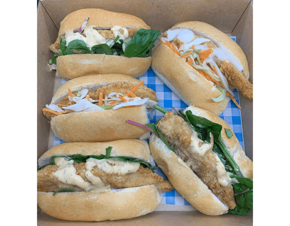 A tasty crispy chicken with coleslaw and garden greens with our own special mayo sauce